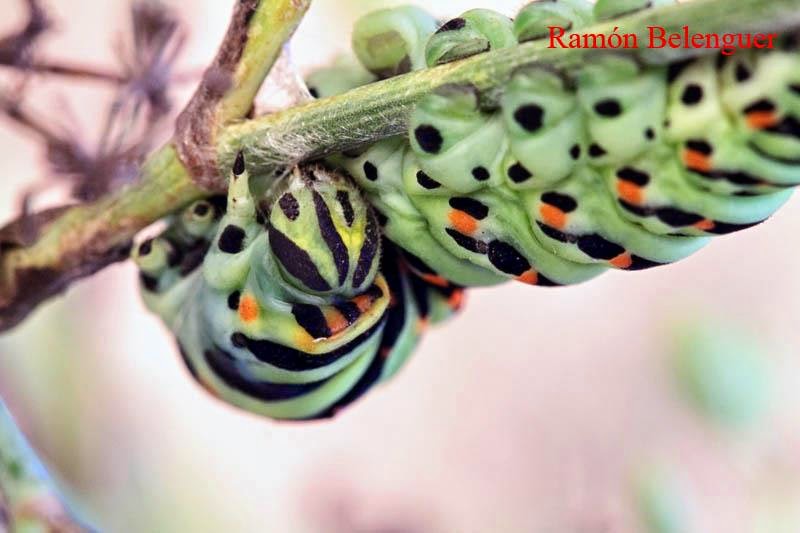 hinojo, el perejil, o de rutáceas como la ruda. Es una oruga que no se esconde mimetizándose con el